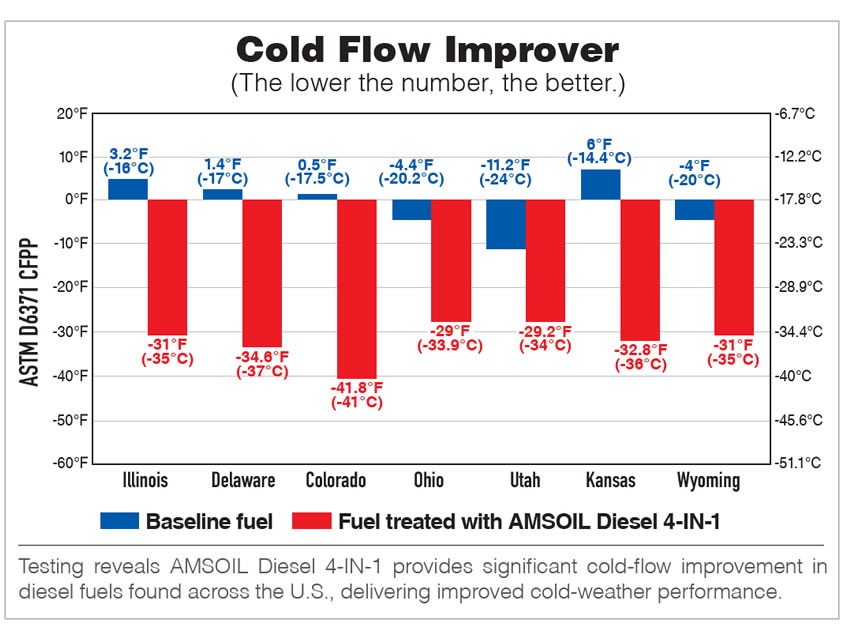 Injector Clean, the excellent cold-flow and anti-gelling properties of AMSOIL Diesel Cold Flow and