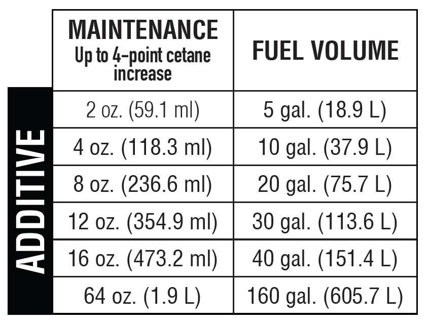 performance. By increasing cetane, Diesel 4-IN-1 improves the ignition quality of diesel fuel,